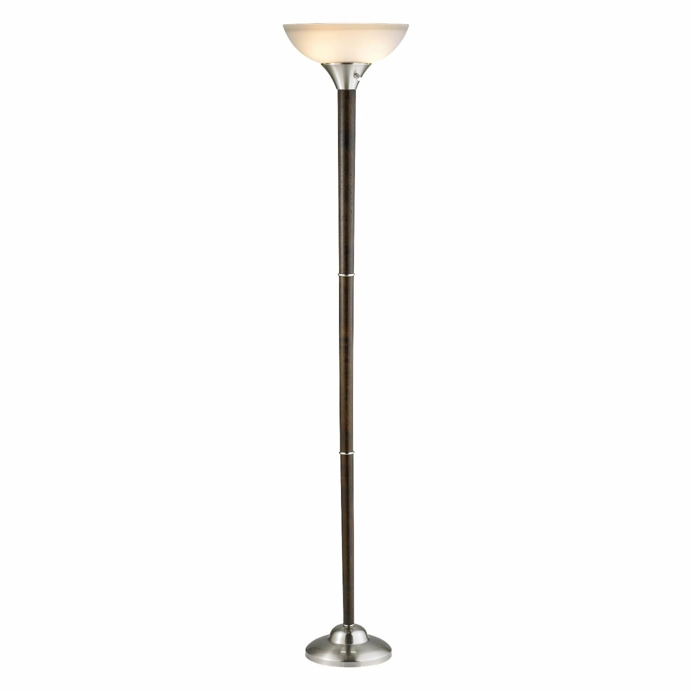 The frosted glass bowl shade on the Adesso Alta Floor Lamp directs light up to bathe your whole room. Its tapered walnut wood-finished post body is accented by satin steel. This floor lamp requires one 150-watt 3-way incandescent bulb (not included).