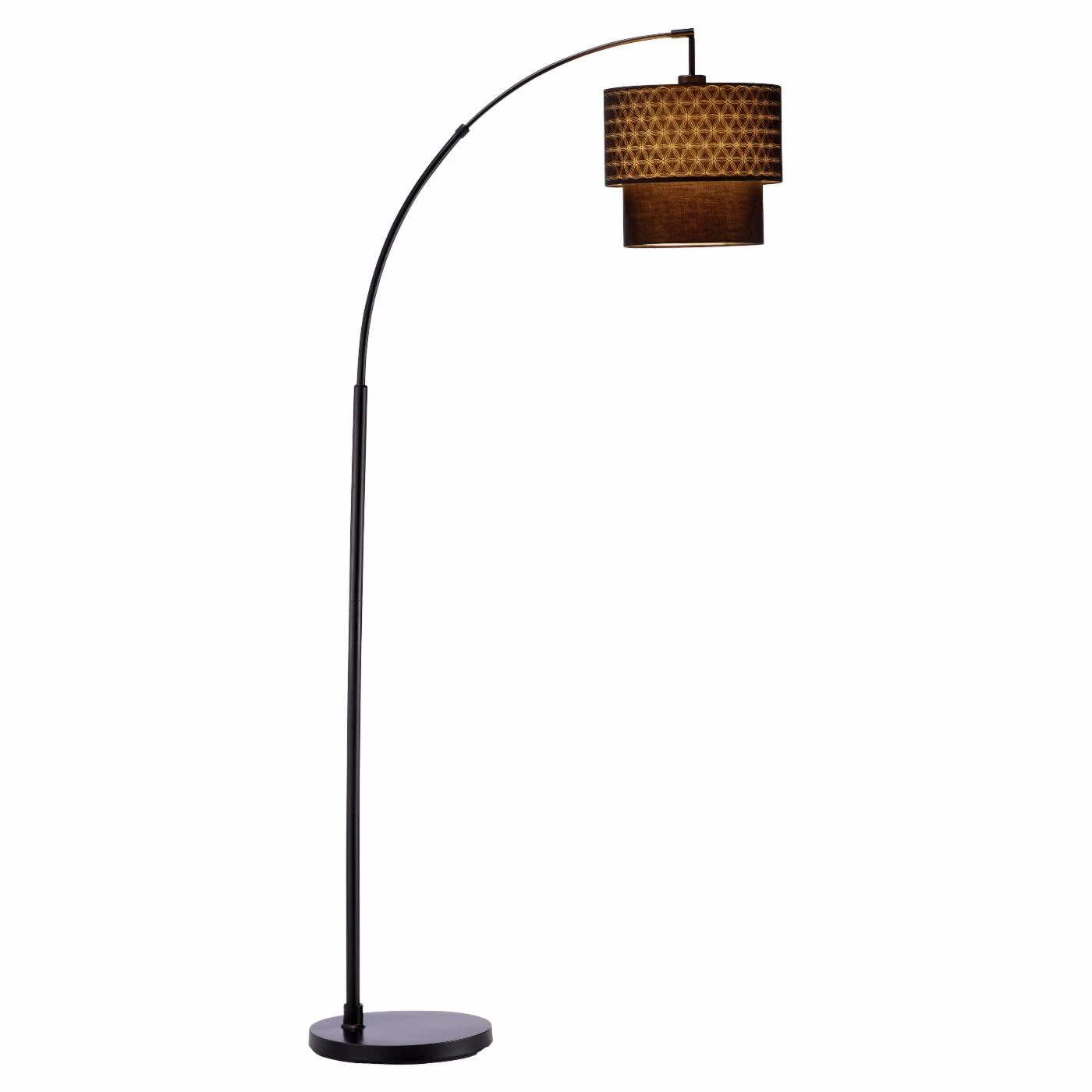 Looking over your shoulder has never been as welcome as it will be when you put the Adesso Gala Arc Floor Lamp right next to your favorite chair. This elegantly simple lamp features a slender, metal body that’s finished in the color of your choice. The extendable arm lets you put the double, hard-backed shade right where you want it. Each shade is covered in rich fabric and conceals a three-way socket switch that fits a 150-watt incandescent or three-way CFL bulb.