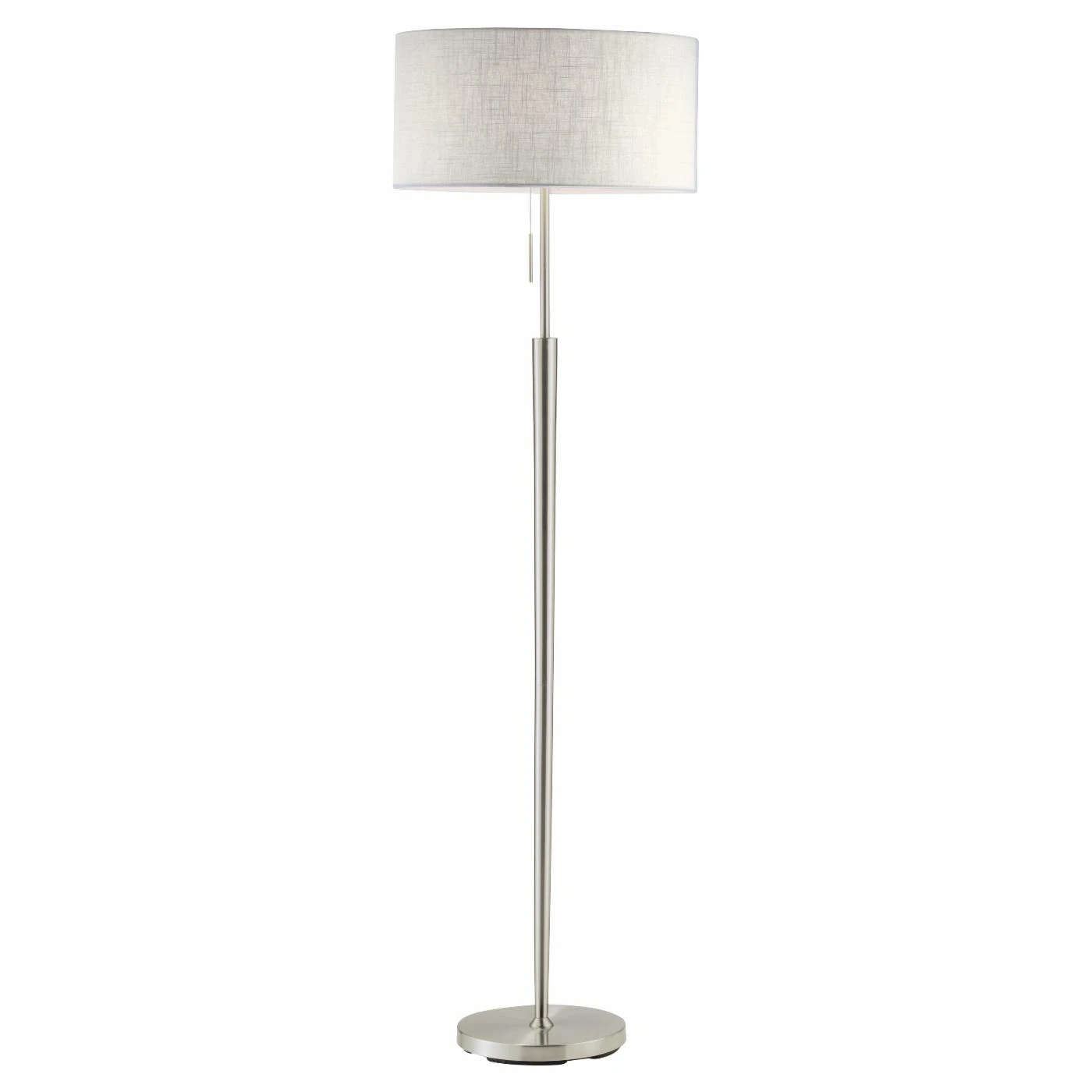 There’s plenty of floor lamps on the market, but it’s a few subtle yet distinctive differences that make the Adesso Hayworth 3457 Floor Lamp – Satin Steel the lamp to have. The slender, satin-steel finished body flares up gently from the wide base, then stops suddenly as it narrows into the thin rod that supports a drum shade of textured fabric. An on/off steel-accented pull chain activates a 150-wat incandescent or equivalent CFL bulb.