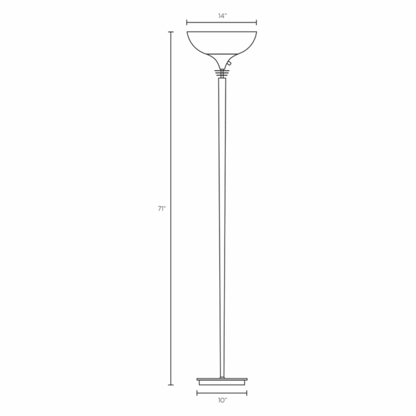 Deco-inspired accents make the Adesso Metropolis Black Nickel Floor Lamp an elegant lighting choice for your home. It has a white frosted glass shade that rests on a fluted metal socket and contrasts beautifully with the black nickel finish on the pole and base. Three disks in descending sizes float just below the socket, creating a unique effect. The pole tapers toward the base, which rests on a sub-base so it appears to float above your floor. A round satin steel accent on the base around the pole completes this lamp’s contemporary look.