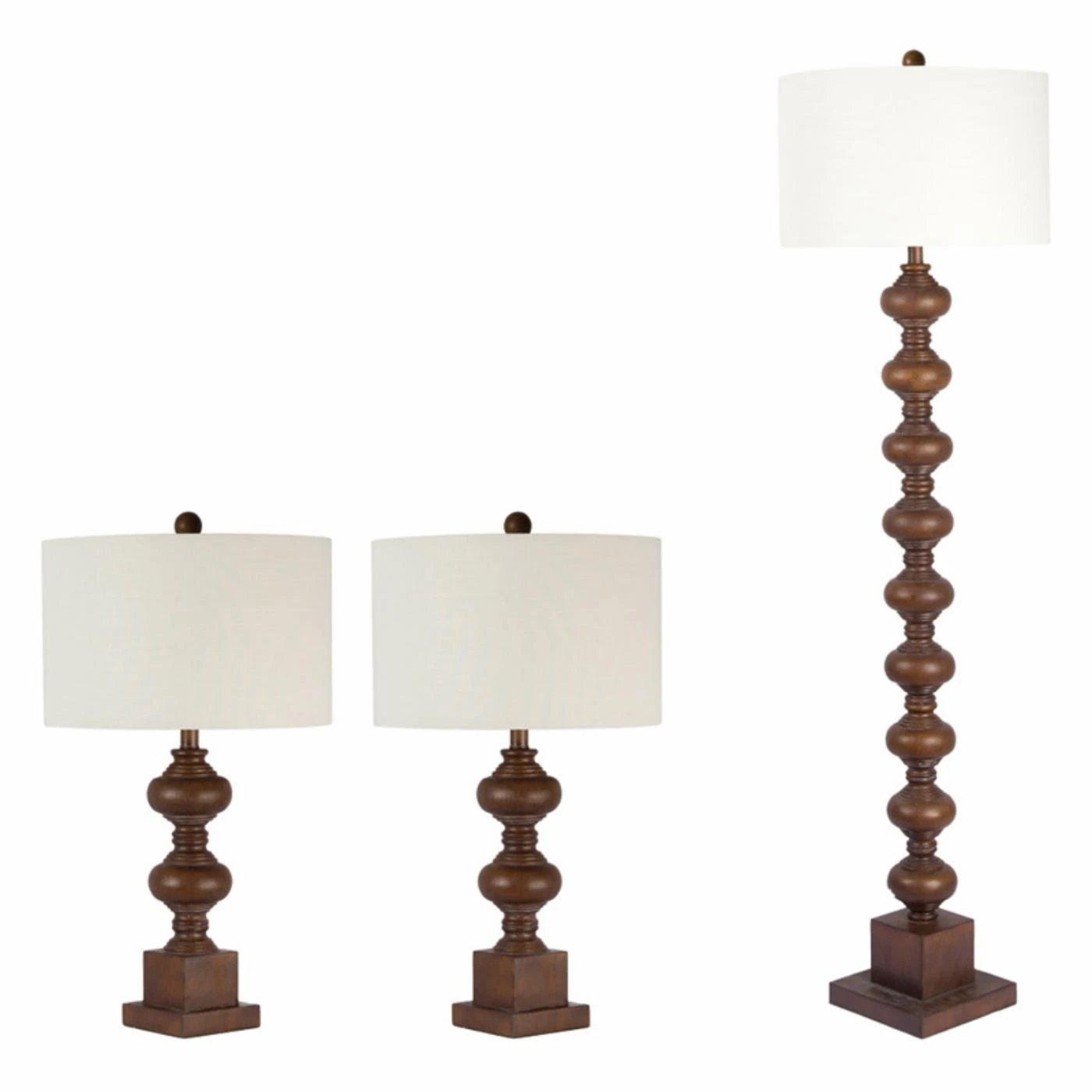 - Includes 1 floor lamp and 2 table lamps