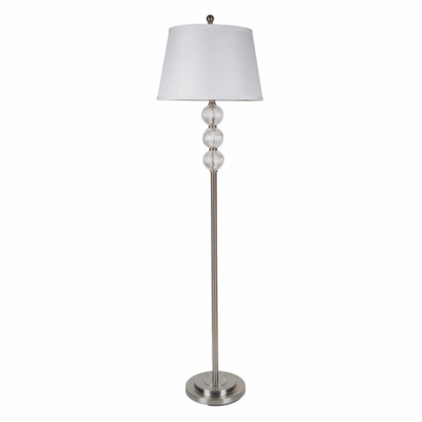 - 3 glass spheres top pole upon Satin Nickel-finished base