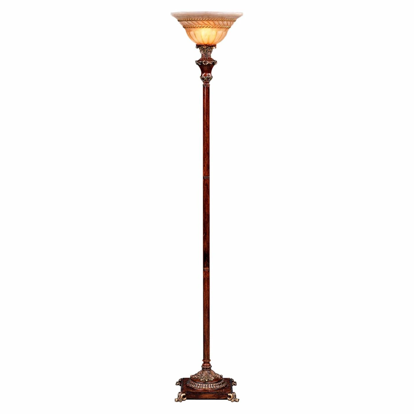This Ore International K-4171FTR Resemble Wood Torchiere Lamp is modeled after antique lamps but incorporates modern features. The extremely lightweight metal lamp has a narrow pole body that makes it perfect for tight corners or smaller living spaces.