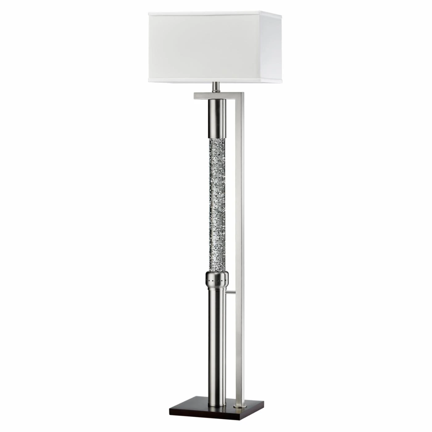 The tall shape and sleek design of the Weston Home Avallon Nickel Floor Lamp with Rectangular Shade are going to draw lots of attention every time you flip that switch. This tall lamp has a steel body with a satin nickel finish. At the center is a long cylinder of clear glass that’s filled with silver sparkles. At the top is a rectangular shade of white fabric over a four-way switch. Bulbs not included.