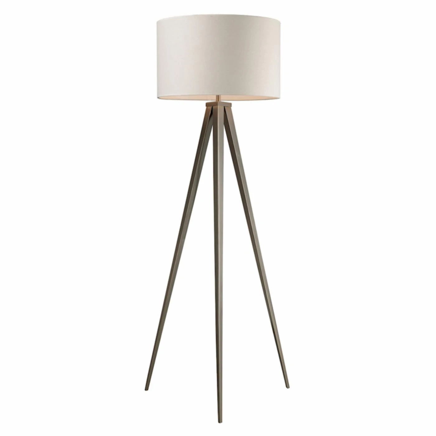 Blending classic and modern design elements, the ELK Lighting Salford LED Floor Lamp instantly updates any room. A tripod base, crafted from metal, is finished in satin nickel and topped with an off-white linen hardback shade with a pure white fabric liner. This floor lamps requires one 9.5 watt LED bulb (not included) and has a three-way switch.