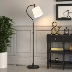 An adjustable arm lets you customize the Hudson & Canal Dinodas Floor Lamp to add just the right touch of light to an interior space. The simple design in blackened bronze lends understated industrial charm to your décor.