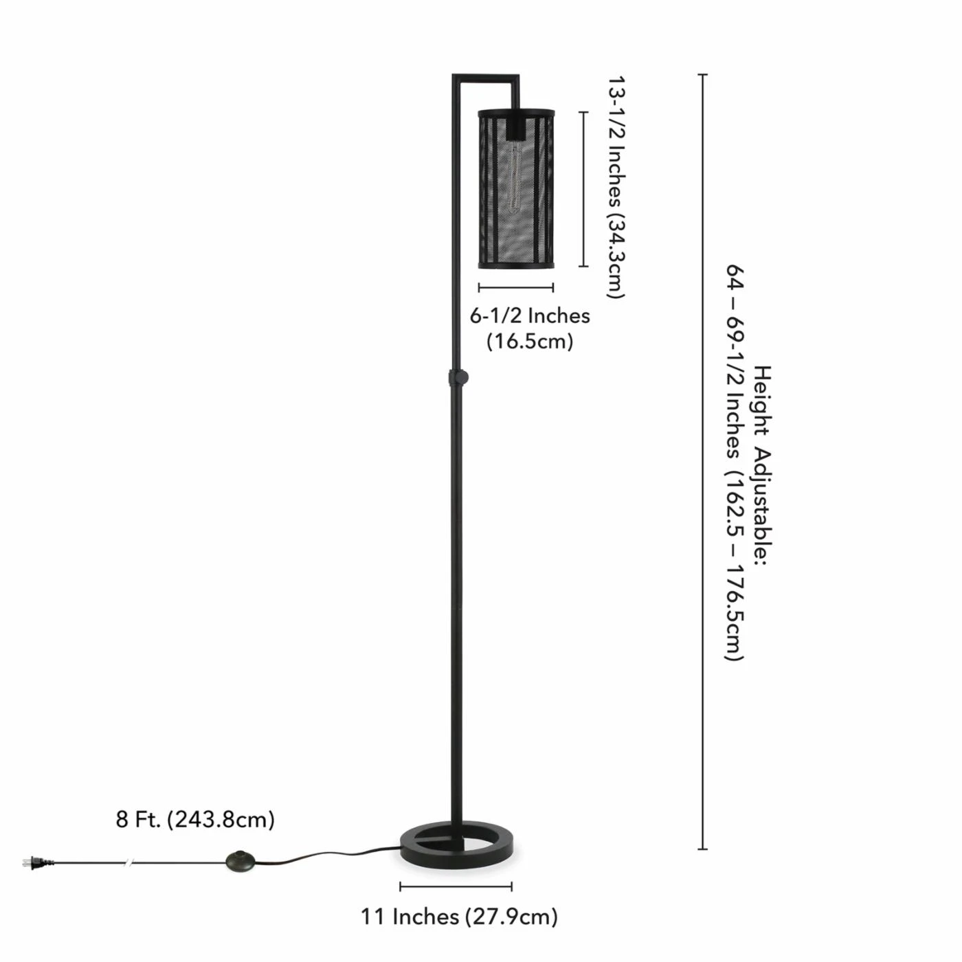 - Overall Dimensions: 11W x 15D x 64 – 69.5H in.