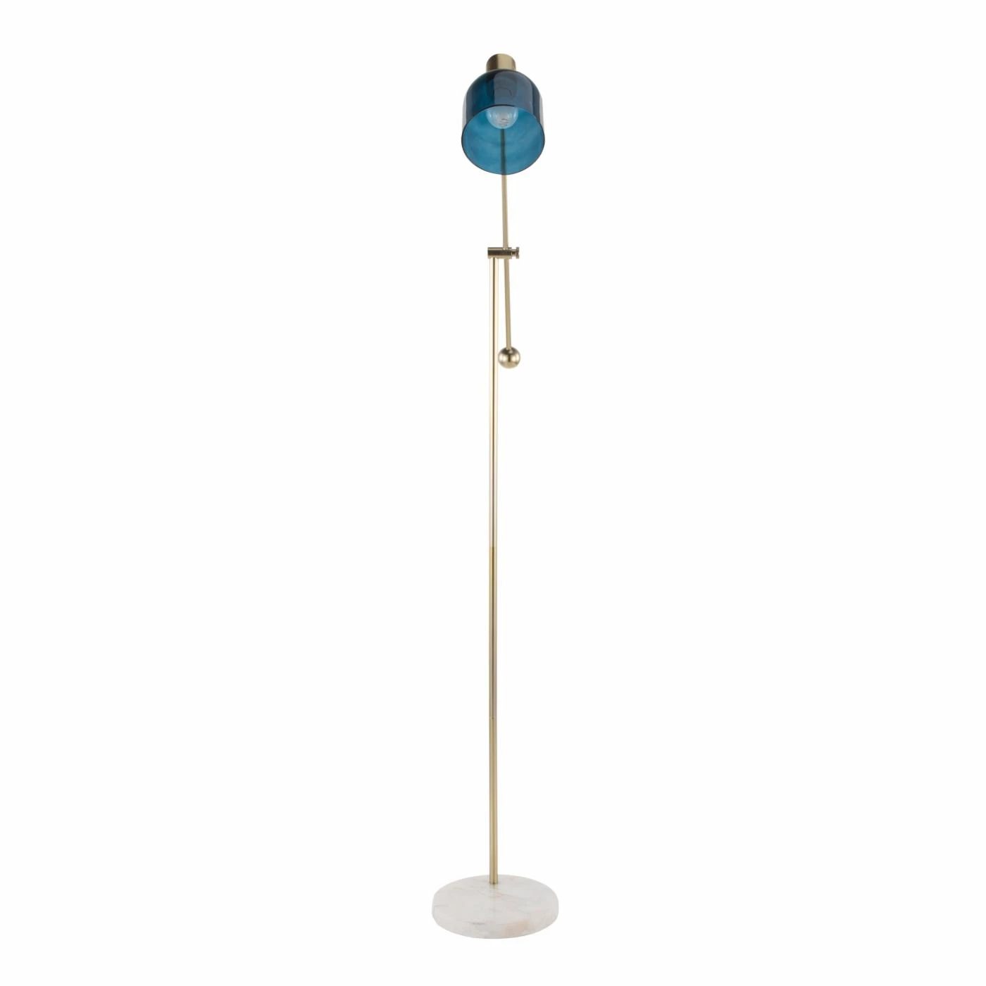 Simple, sophisticated style makes the LumiSource Marcel Floor Lamp ideal for any room in your home. The round, white marble base adds an elegant touch. A slim, metal stand in a gold finish contributes to the sophisticated look of the lamp. A translucent, blue shade brings a pop of color for added visual interest. This lamp includes a convenient inline on/off foot switch. It requires one 60 watt light bulb (not included). Complete your living room, office, or den with this charming floor lamp.