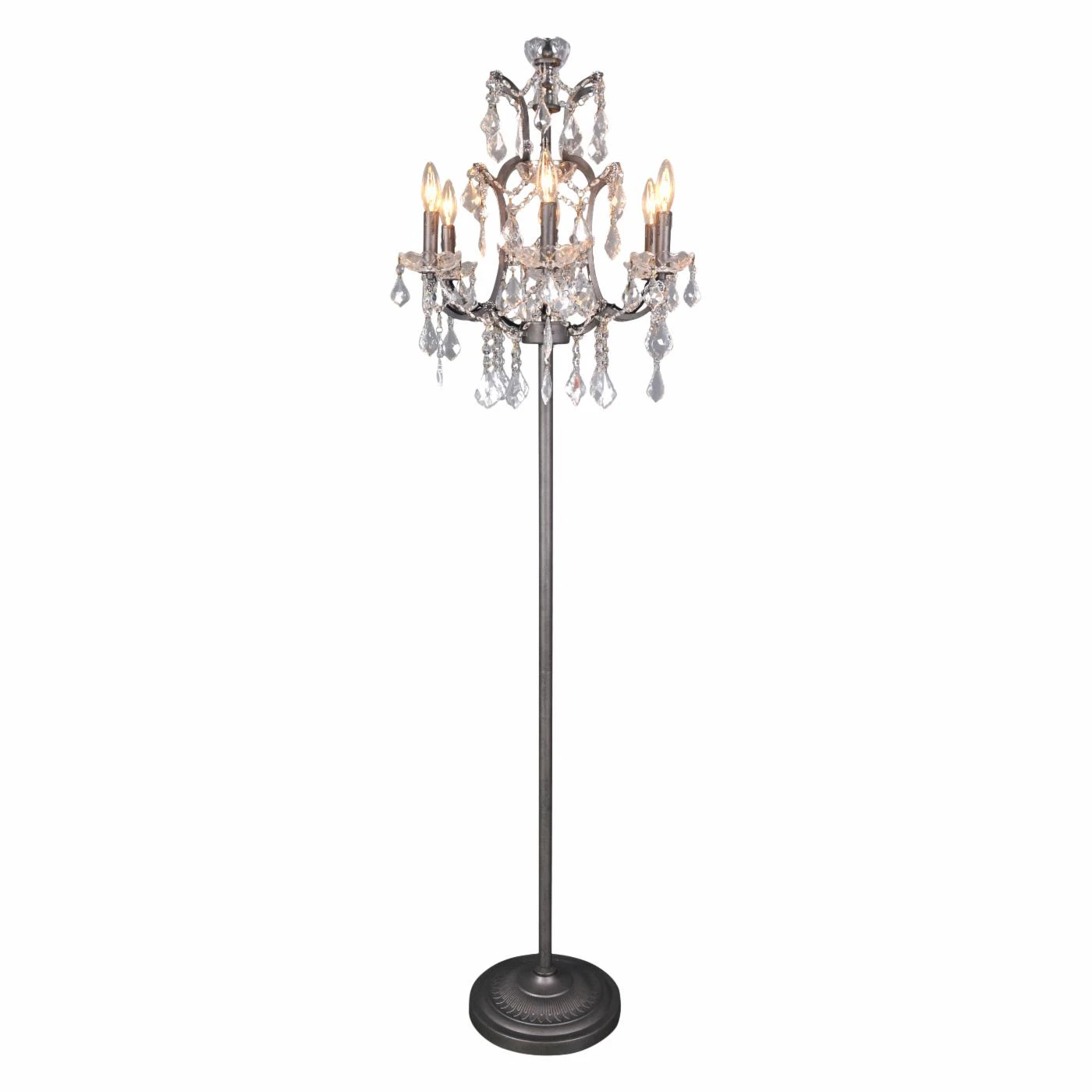 Draped in elegant crystals, the Moes Home Luisa RM-1015-17 Floor Lamp brings beautifully ornate classic style to your space. A clear finish gives this floor lamp a hint of vintage charm. Six 40-watt incandescent bulbs are required (not included).