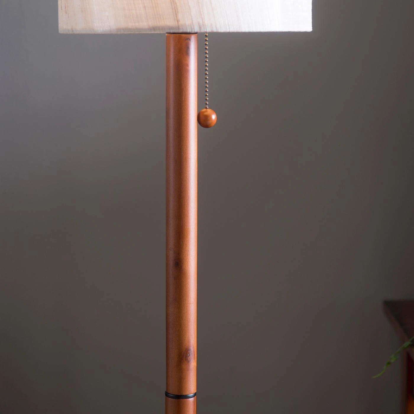 Slender and graceful, the Adesso 3338-15 Hamptons Floor Lamp casts warm light through its double-wall shade. Perfect for any living room, den, or bedroom, this floor lamp has a wooden base with a walnut finish, and a wooden ball accent on its pull-chain switch. This lamp measures 10 diam. x 65H inches overall. Coordinate with the Hamptons table lamp (sold separately) to give your room a complete lighting makeover.