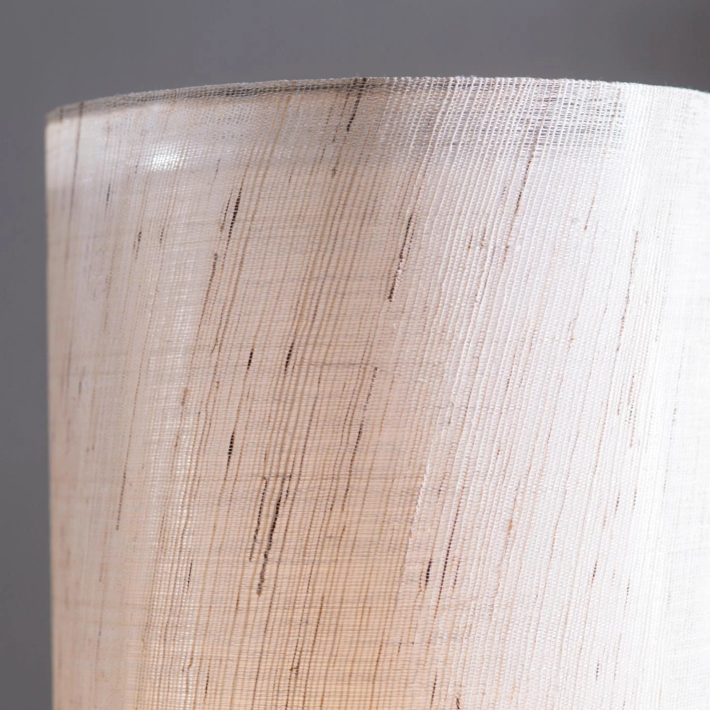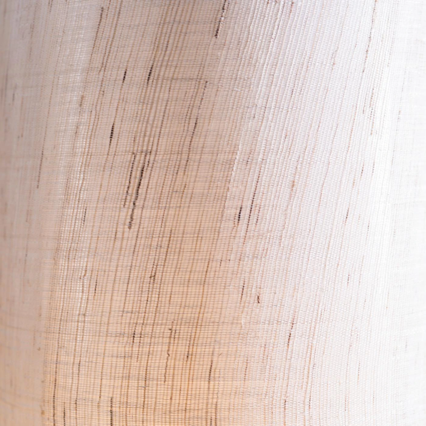 - Beige linen outer shade; white cotton inner shade
