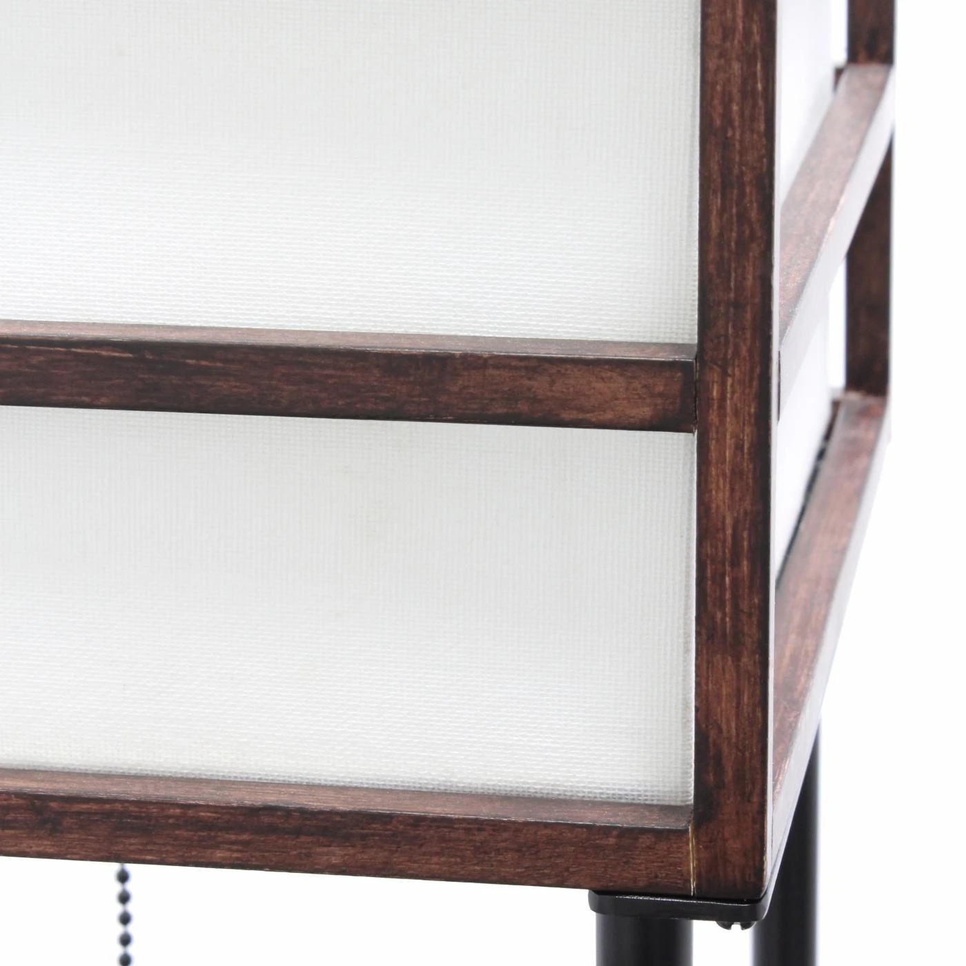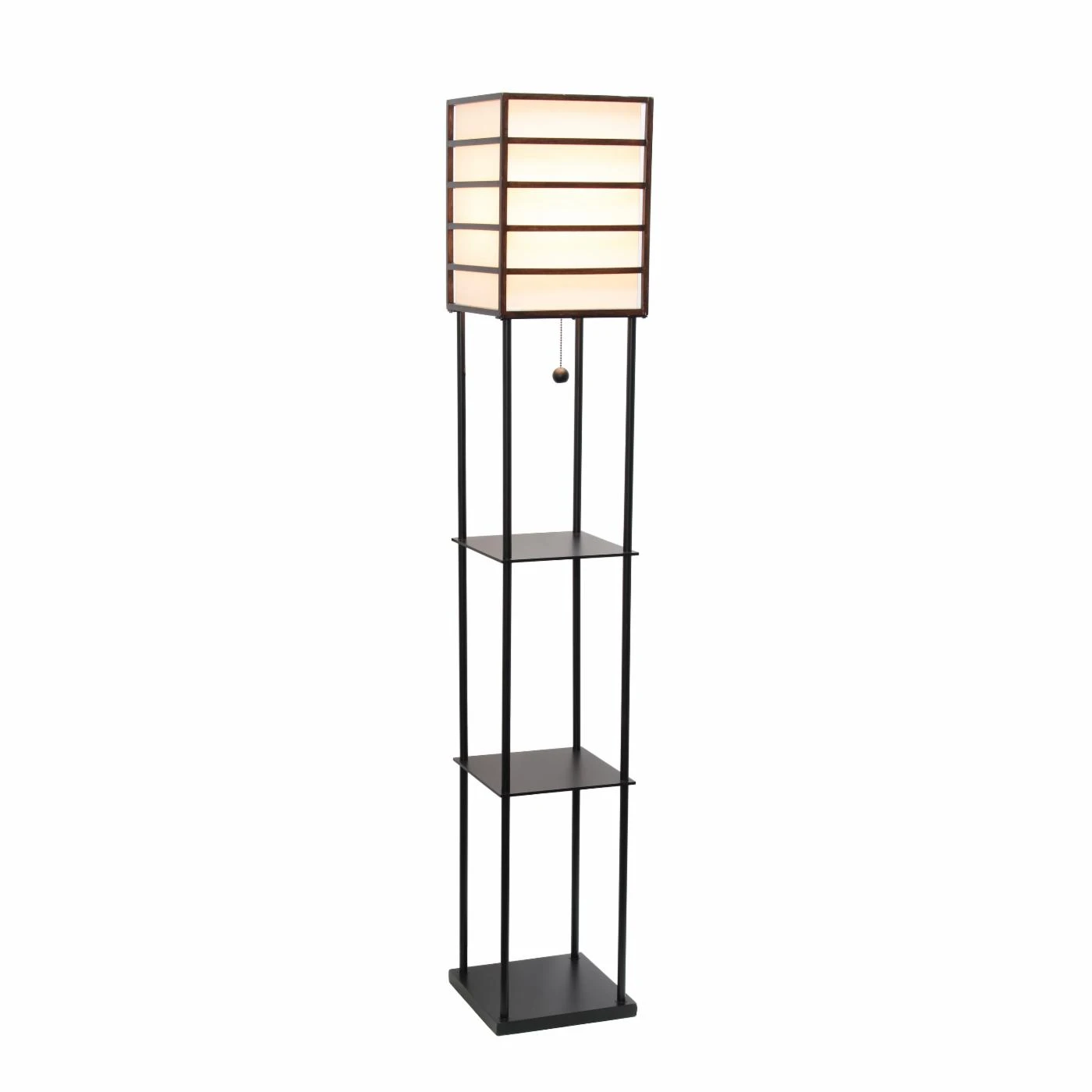 Illuminate your living space in style with our floor shelf lamp with linen shade. This gorgeous piece is accented with black metal and dark brown wood. The shelves are versatile and can be used to display photographs and other memorabilia while the linen lamp shade casts a soft, warming light throughout your living space. With its’ clean and modern lines, this lamp adds sophistication and style to any home’s décor.