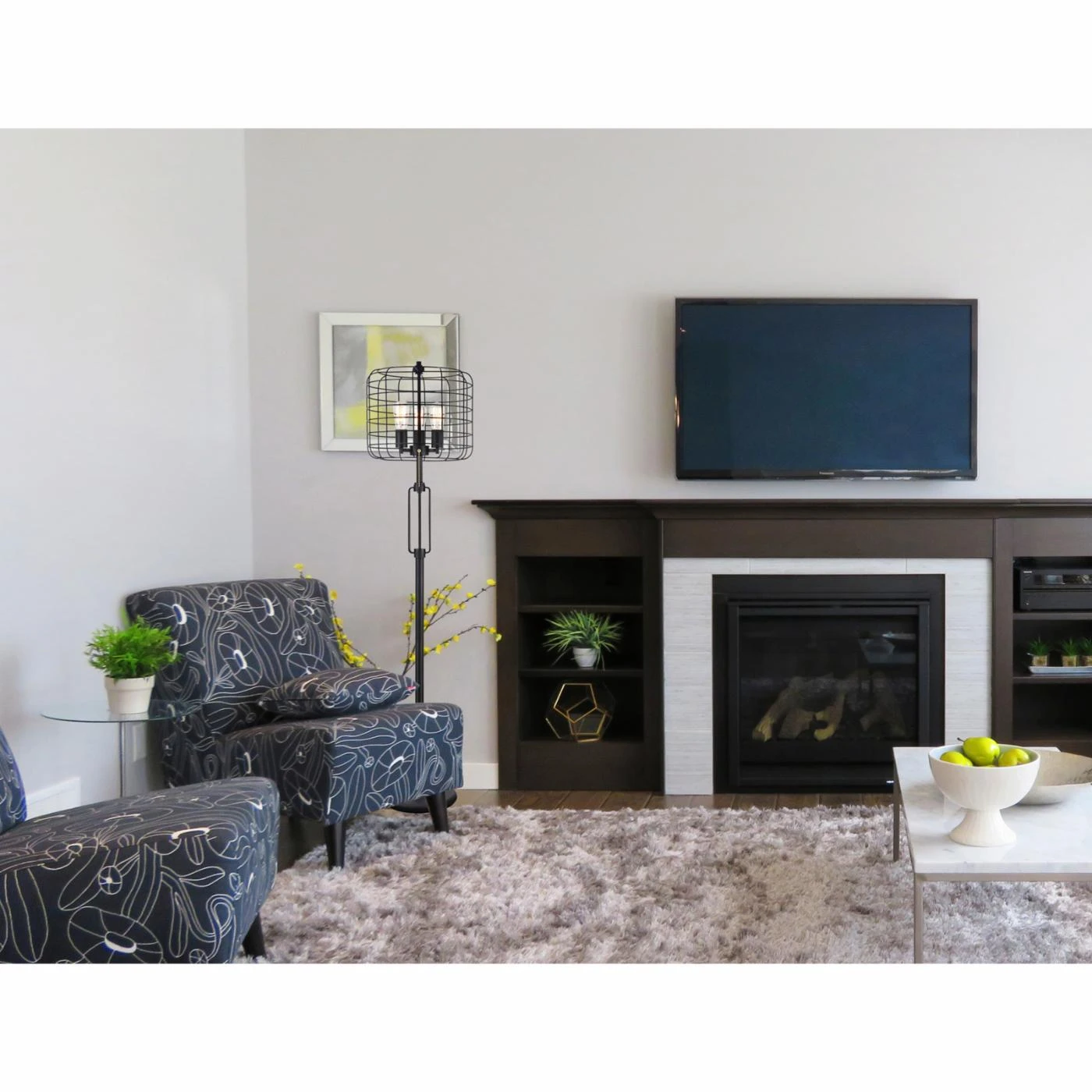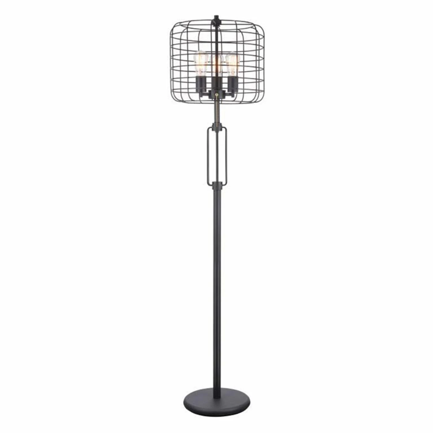 The ORE International 3-Light 63 in. Powder Coated Industrial Cage Edison Floor Lamp accents your modern or industrial living space with unconventional charm. It features a caged metal shade cage that surrounds three nostalgic filament Edison-style bulbs (not included). Simply turn on and off with the pull chain.