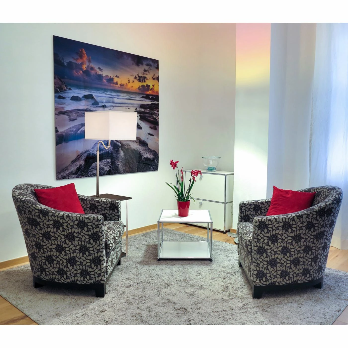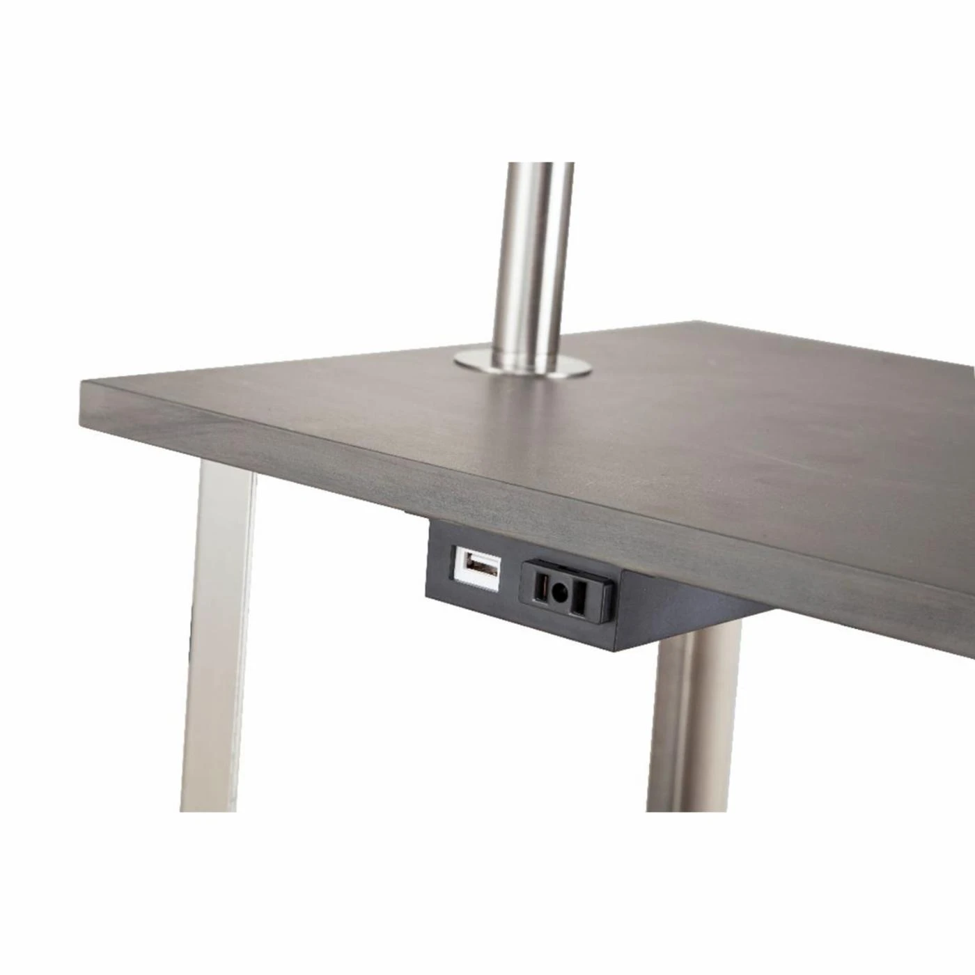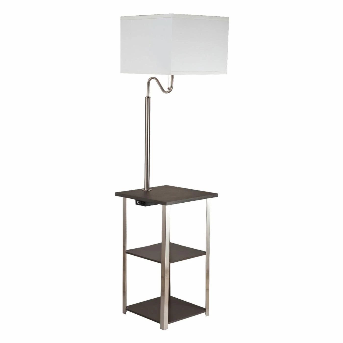 Get storage space and lighting in one compact design with the ORE International Dru 58 in. Square Side Table Floor Lamp and USB Station. Boasting two metal shelves and a top shelf crafted from engineered wood, you’ll have more than enough space to store books, magazines, remotes, and more. Plus, this piece features a built-in outlet and USB port so you can easily charge your devices whenever needed. The silver finish on the metal frame beautifully complements the rich brown finish on the shelves to create a look that blends seamlessly with most color schemes. A square K/D cotton/linen shade in white allows this piece to blend seamlessly with most decors.