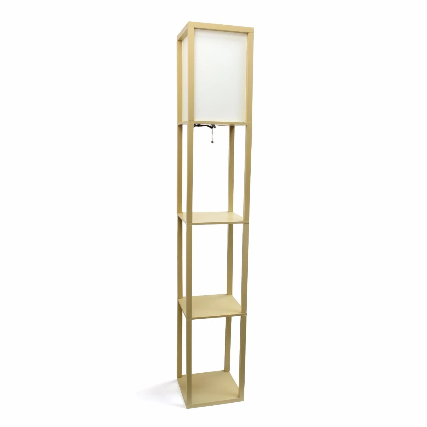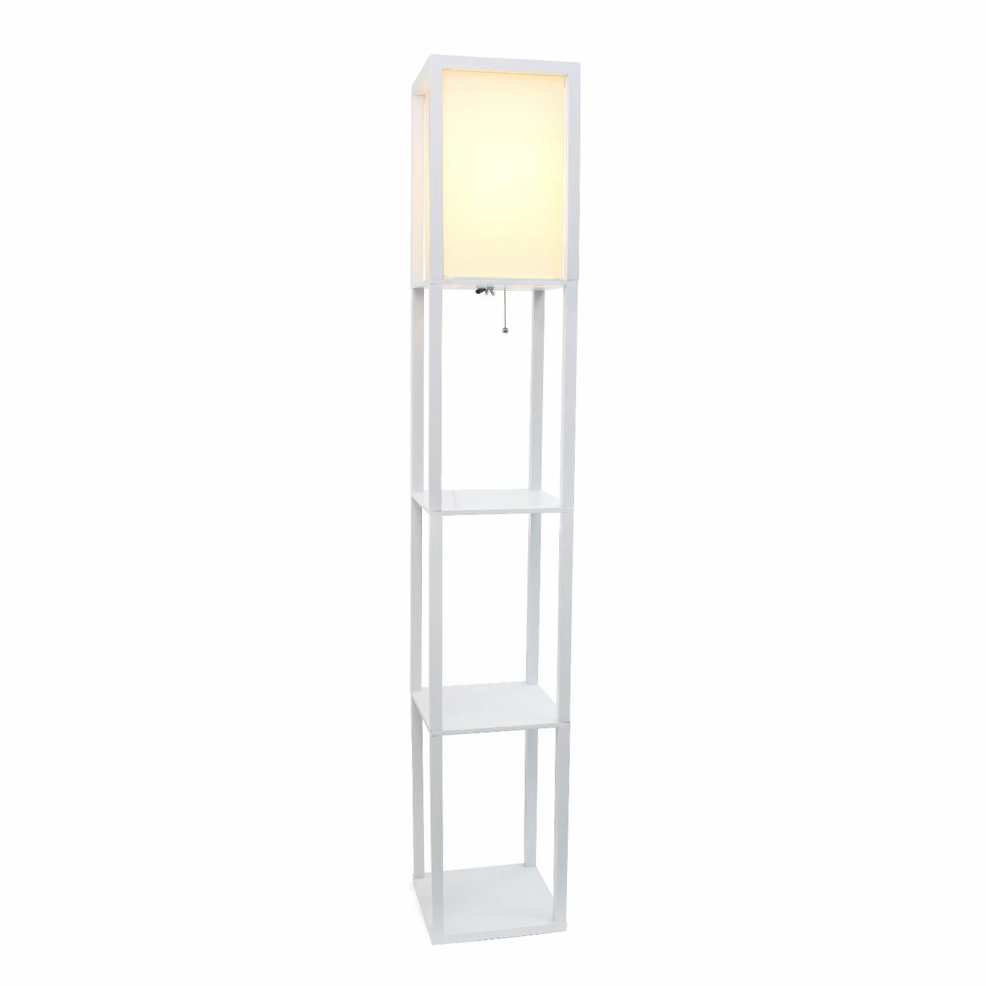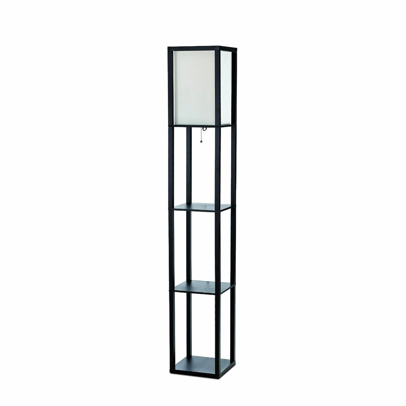 Perfect at your bedside, this Simple Designs LF1014 Floor Lamp with Shelf offers two open shelves and contemporary style. Its white fabric shade and choice of finish ensure this floor lamp will work with any decor. It requires one 100-watt bulb, not included.