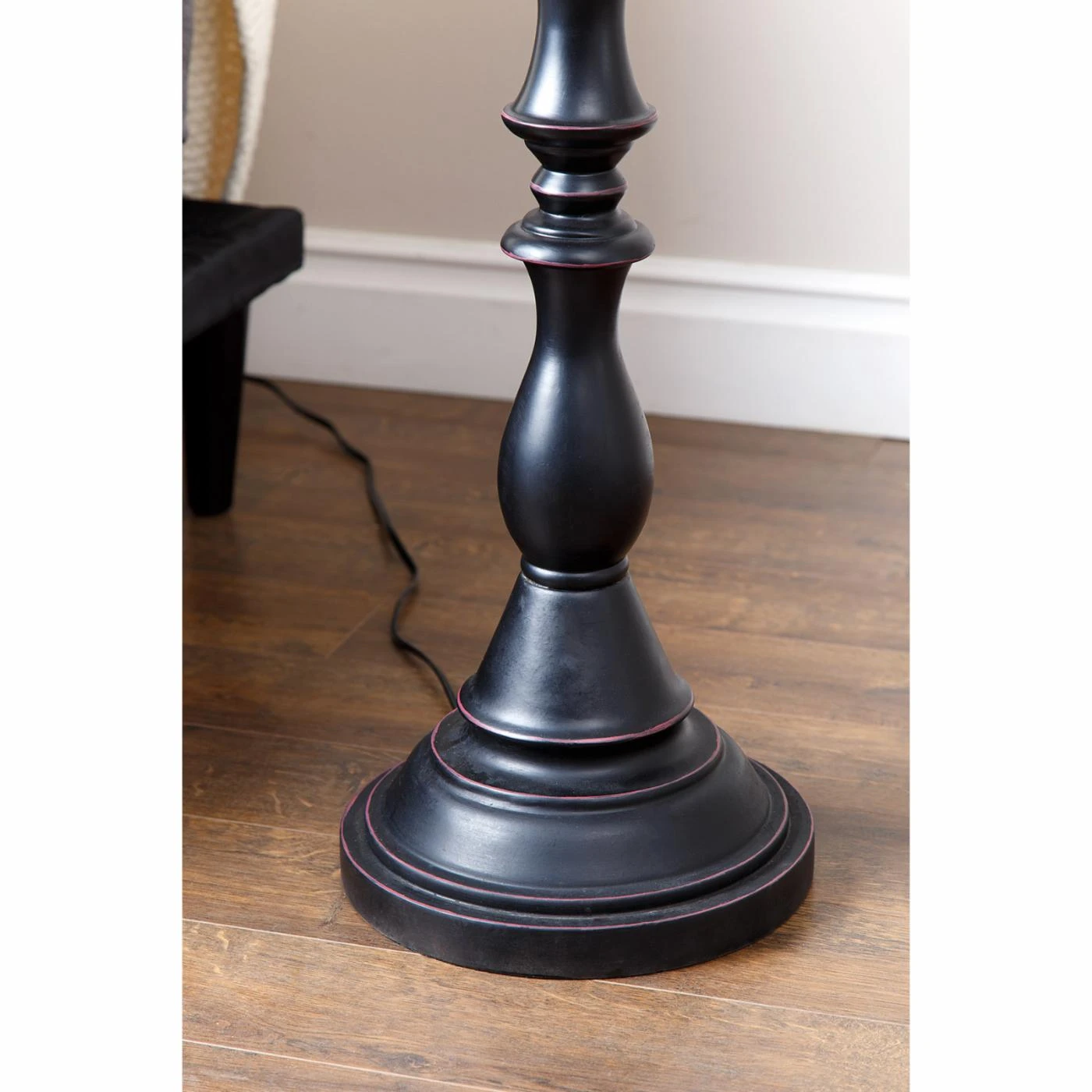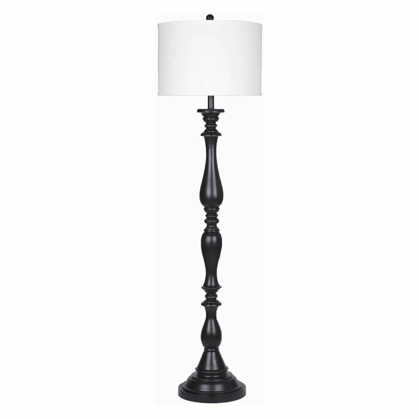The elegantly turned base on this Abbyson Riley SP-3080-EB Floor Lamp comes in a rich espresso finish. This classical floor lamp features a socket switch design, white cotton drum shade, and espresso-finished ball finial. The floor lamp requires one 150-watt LED bulb, not included.