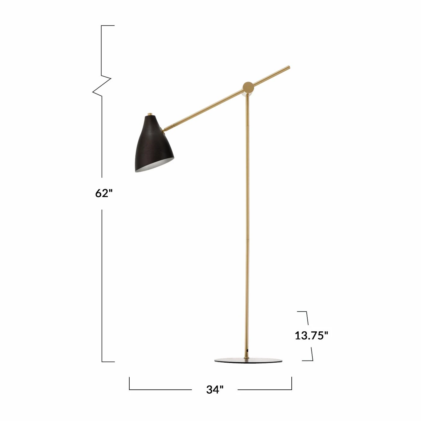 - Floor lamp measures 34W x 14D x 62H in