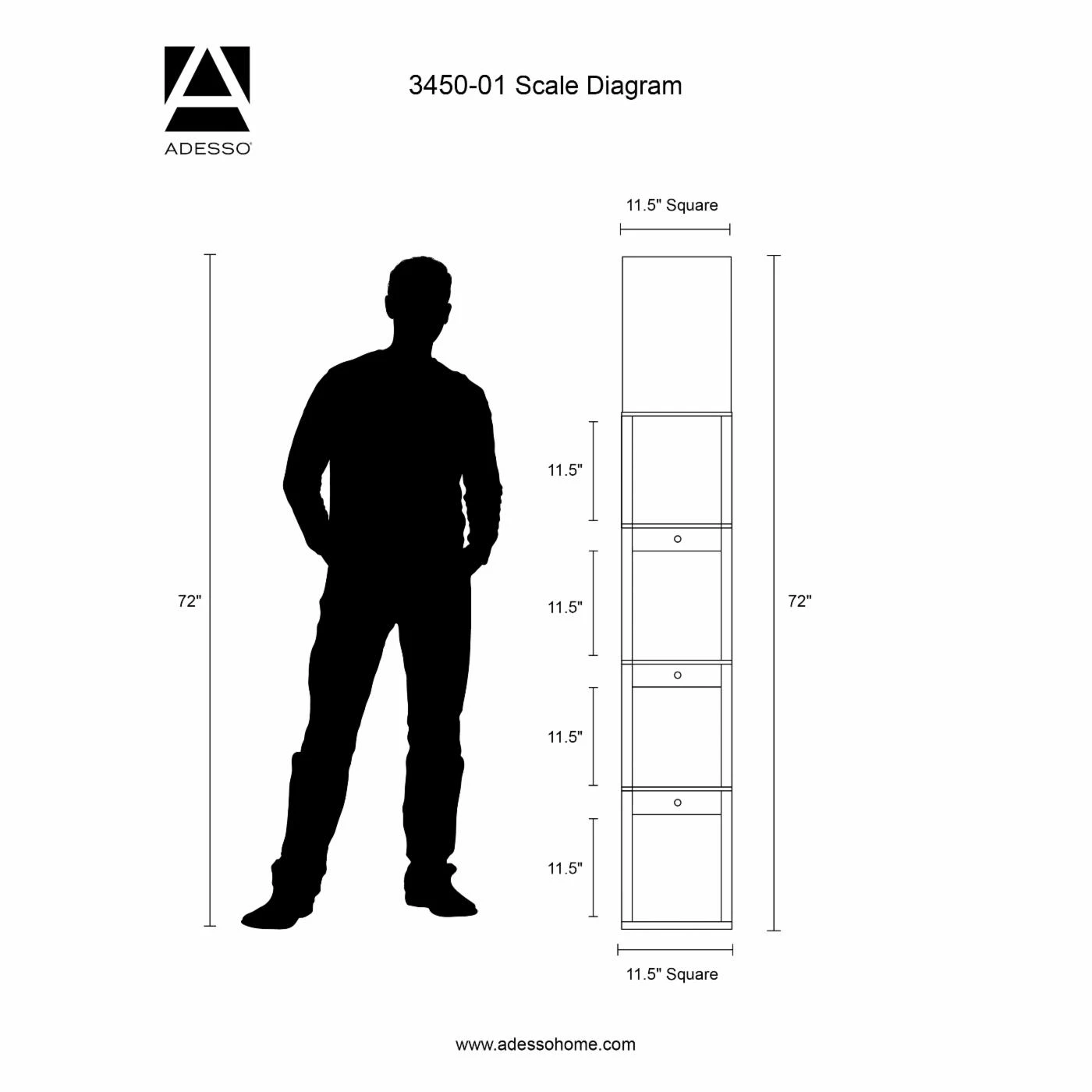 - Dimensions: 11.25W x 10.25D x 72H in