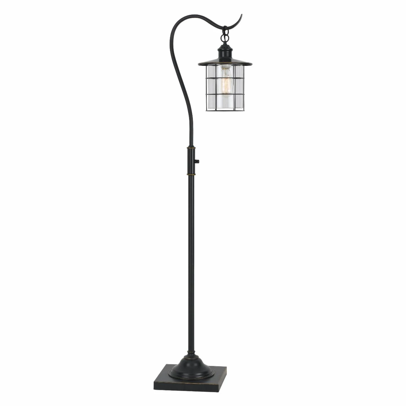 Inspired by nautical lanterns, this Cal Lighting Silverton BO-2668 Floor Lamp features a clear glass shade tucked within a wire metal framework. This floor lamp boasts a curved hook design, dark bronze finish, and requires one 60-watt incandescent bulb (not included).
