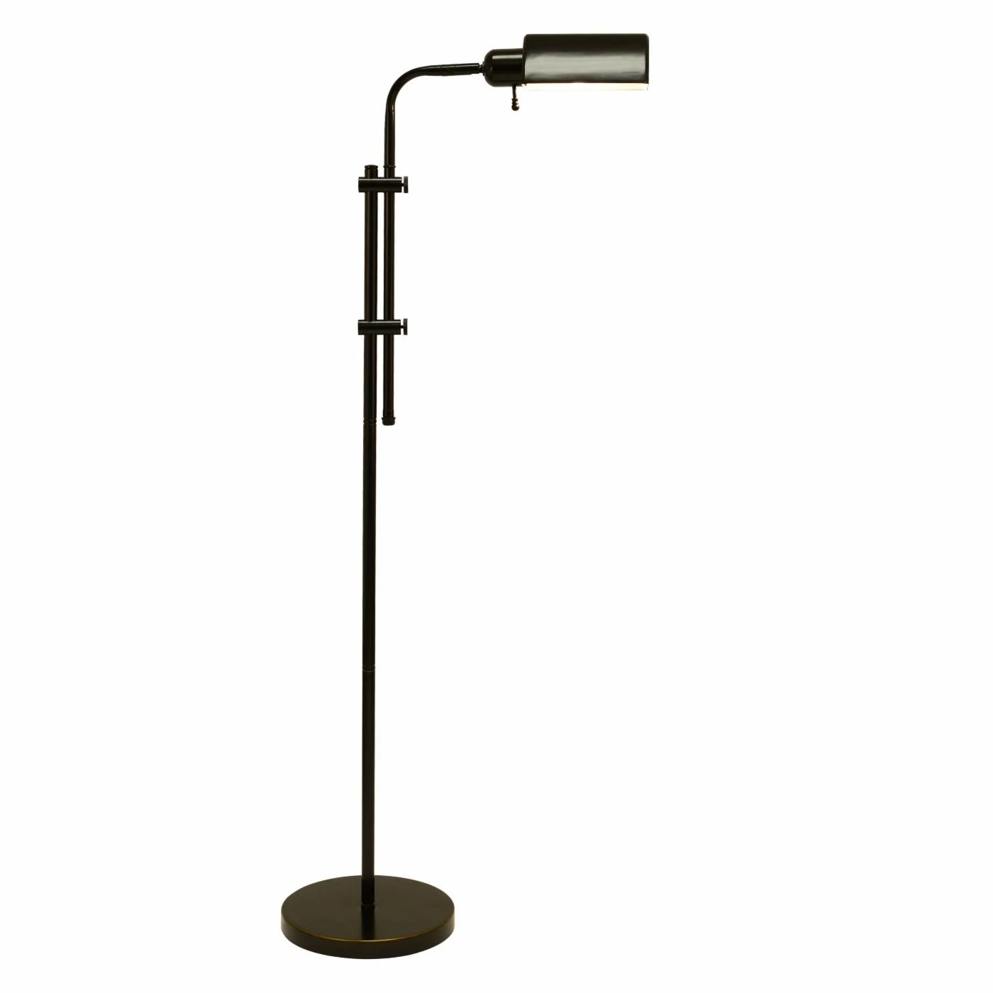 Drawing inspiration from antique industrial lighting, the Decor Therapy Pharmacy Floor Lamp adds a sleek touch to modern décor. The oil-rubbed bronze lamp is height adjustable and features a pivoting shade, so you can direct its light precisely where you need it. An easily accessible on-off switch controls the lamp.