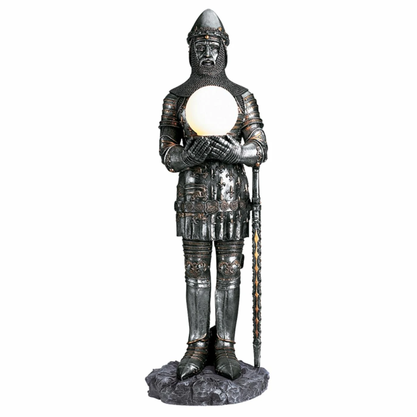 Sir Percival is known as the knight who found the holy grail, and the Design Toscano Sir Percivals Sculpture Floor Lamp may not help you find any historic artifacts, but it will add a warm light to your space. The body of this lamp features a 360-degree sculpture with a high-level of detail and a hand-applied finish of two-toned faux metal. Percy holds a globe of frosted glass that’s illuminated by a single incandescent bulb. A convenient foot-switch makes it easy to activate.