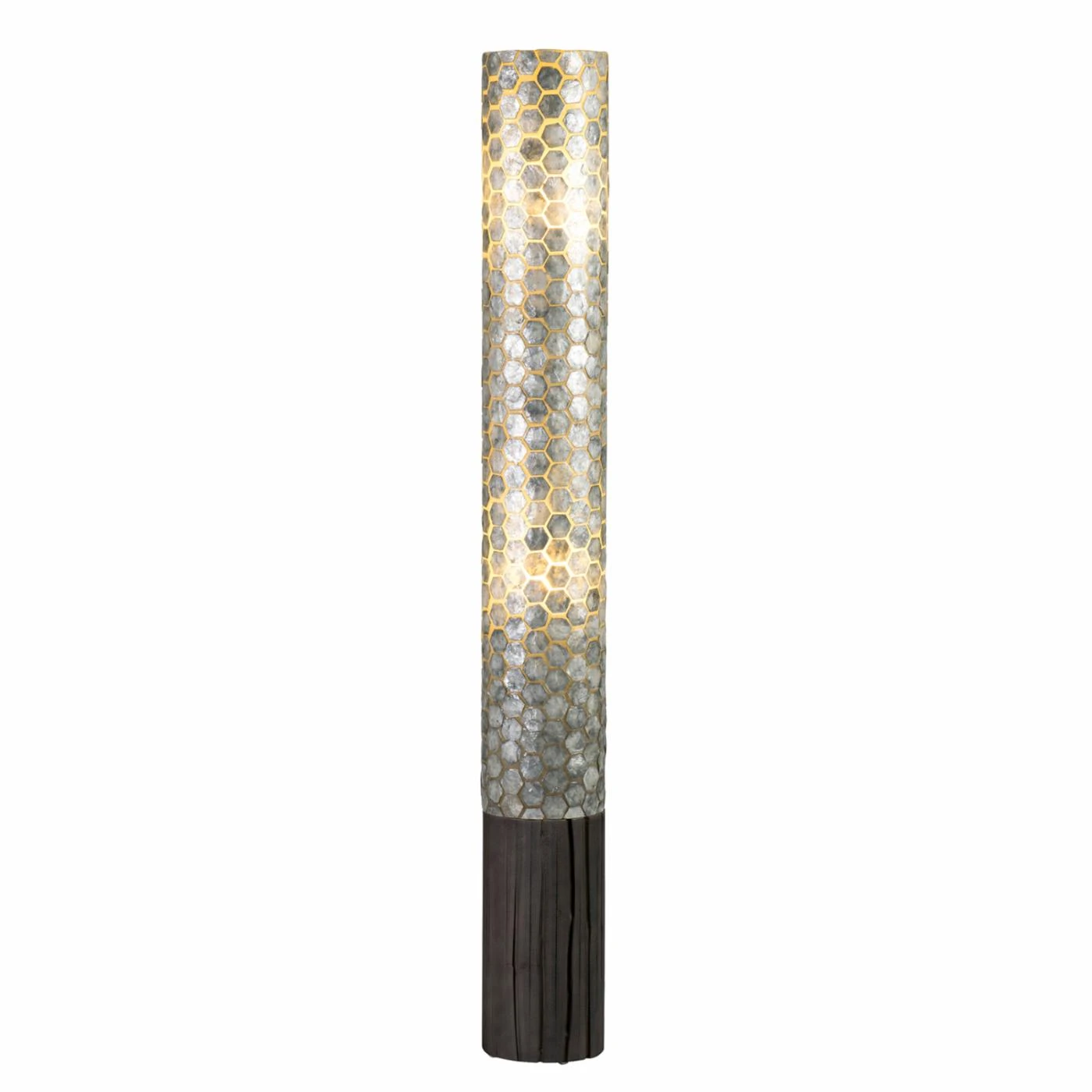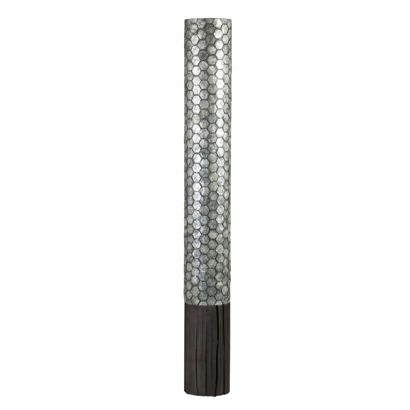 Sleek cylindrical shape lends the East At Main Camilla Floor Lamp a graceful profile. The tiled fiberglass shade is finished in a soothing slate gray. Two 40-watt incandescent bulbs inside provide warm ambient light in your space.