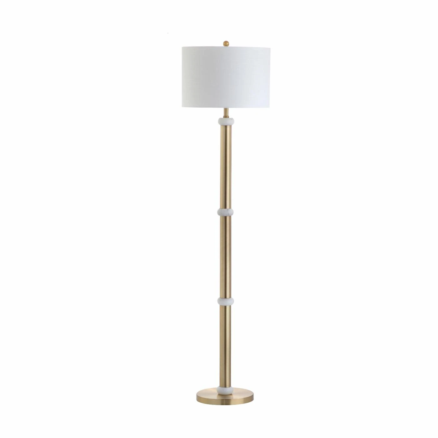 You’ll love reading un the oversized cotton drum shade of the JONATHAN Y Gregory LED Floor Lamp. An elegant addition to your reading nook, this floor lamp features a brass column studded with white Carrera marble accents. It requires one bulb and is compatible with any 12-watt LED, 100-watt type A, or 23-watt CFL. A nine-watt LED bulb is included.