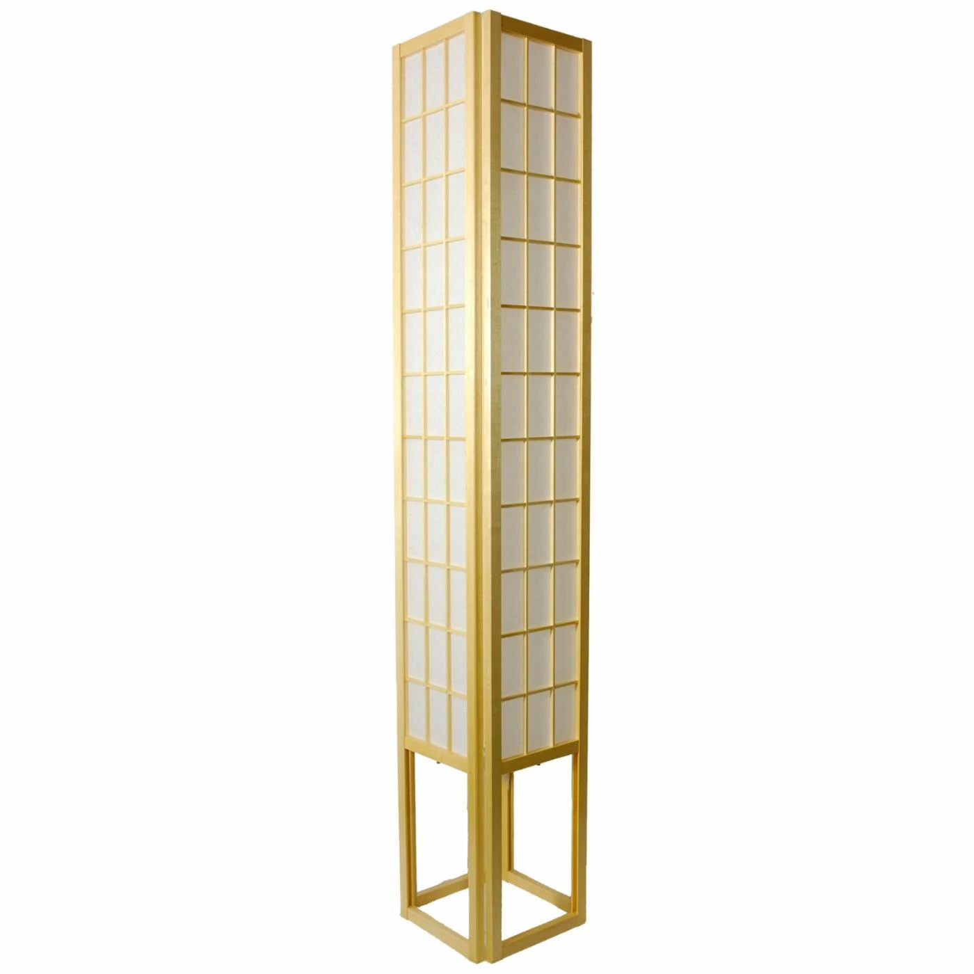 The Oriental Furniture Window Pane Shoji Lamp – 72 Inch – Natural is inspired by the elegant simplicity of Japanese Shoji screens. One of our largest lamps, it forms the focal point of any room. This distinctive Asian-style lamp will fill your home with a soft, soothing glow. It has been handcrafted by skilled artisans in Guangdong, China. Constructed using durable Scandinavian Spruce wood, this 72-inch tall lamp features panels of tough, pressed pulp rice paper. The beautiful and understated lattice design adds visual interest. This UL-approved lamp stands out with a subtle natural wood finish. It utilizes a convenient foot switch and requires a pair of 25-watt maximum, medium-base bulbs, which are not included.