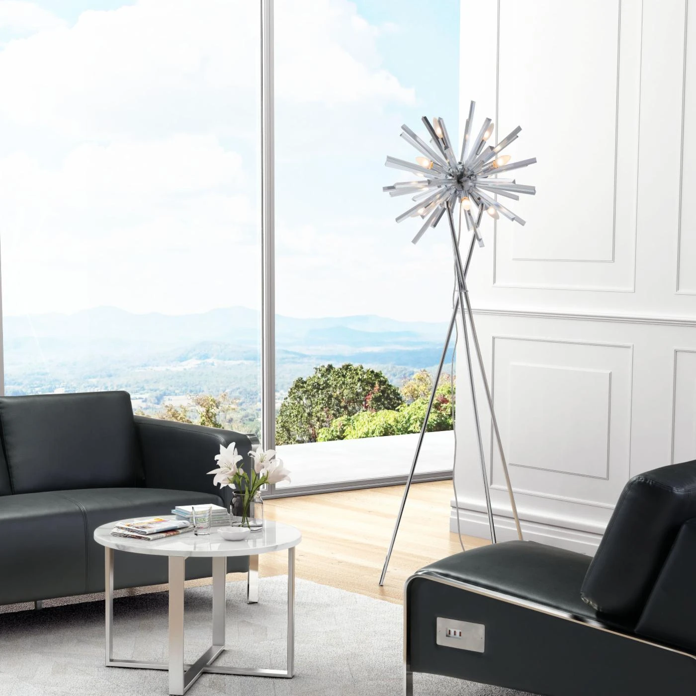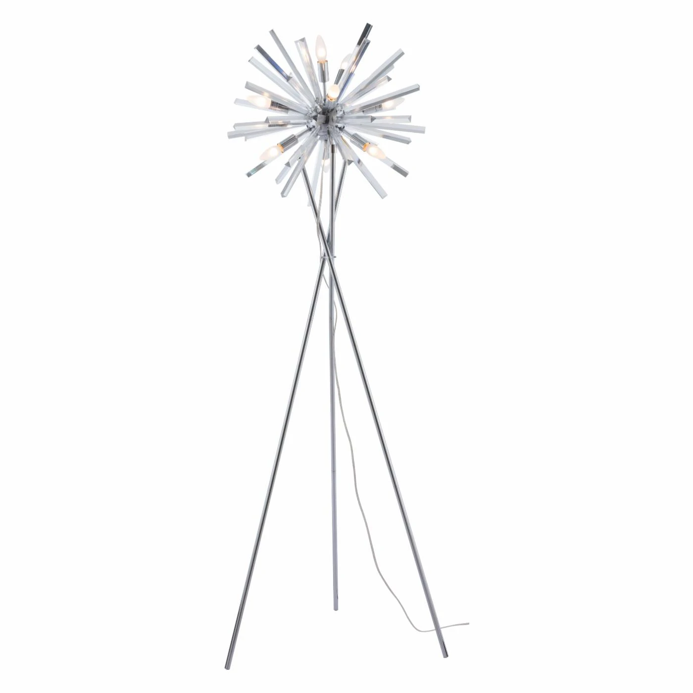 A mid-mod starburst in polished chrome ensures this Zuo Modern Savoy Floor Lamp will light your favorite room with distinction. A foot dimmer switch makes this floor lamp perfect. It requires nine 25-watt Type B bulbs (not included).